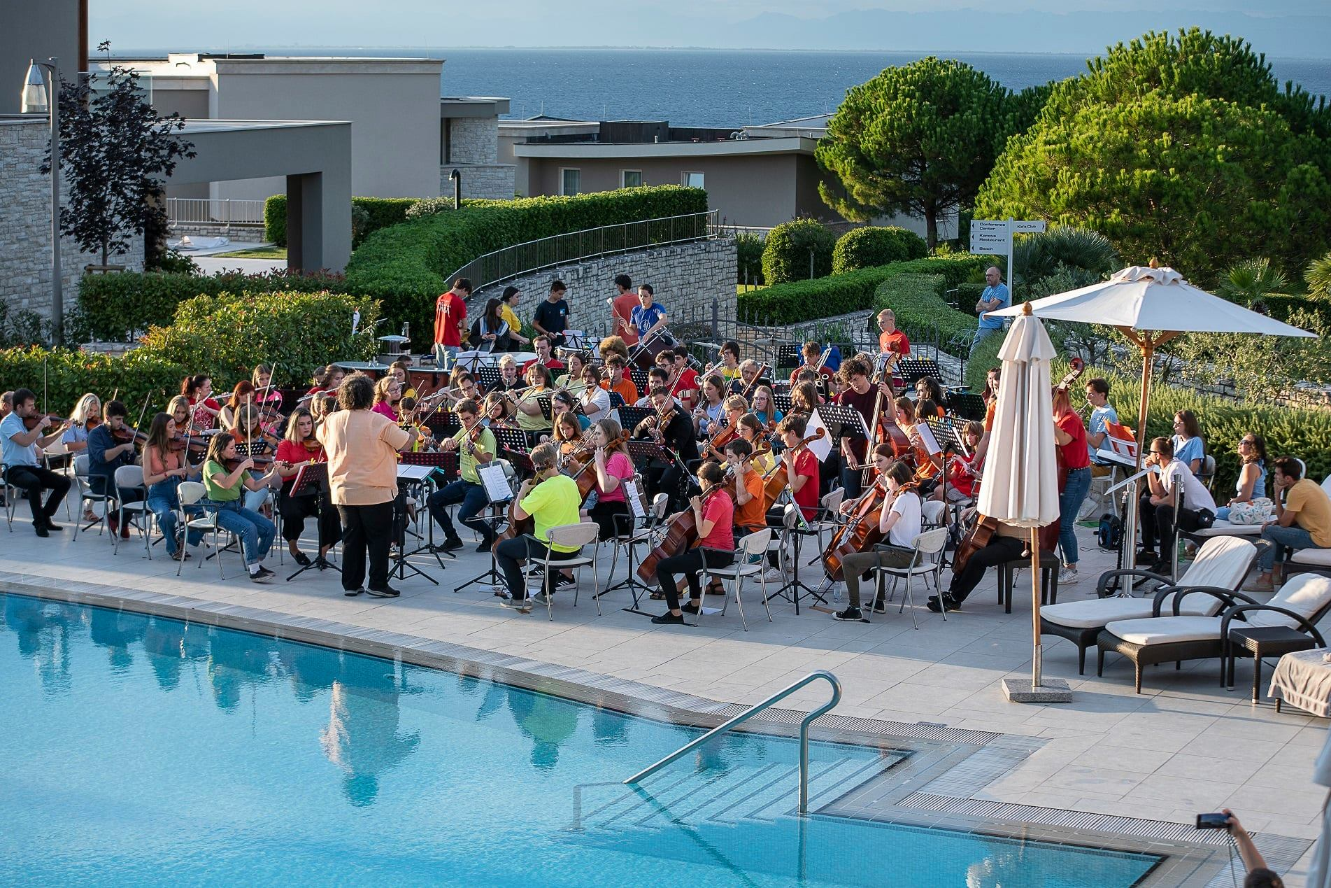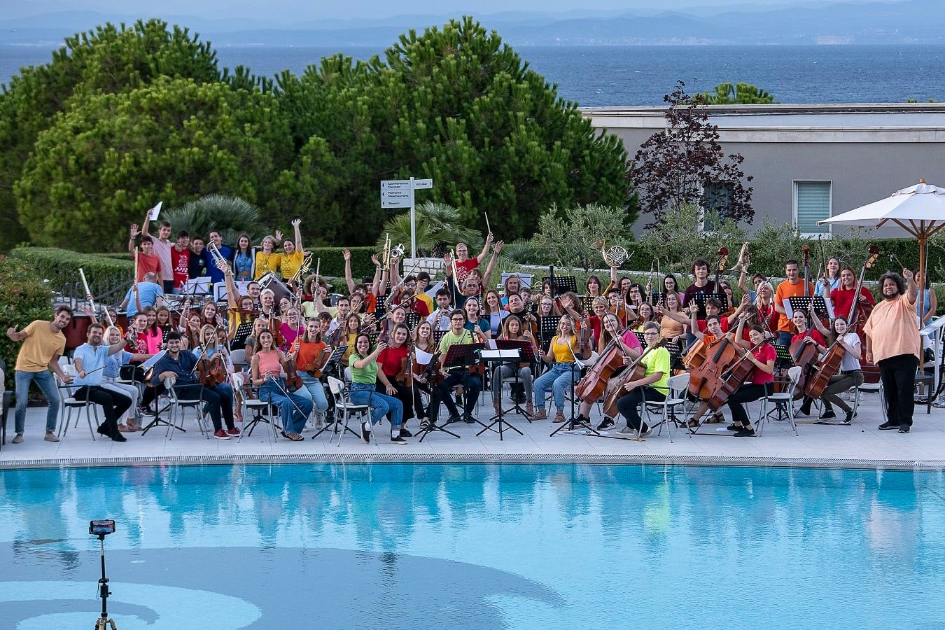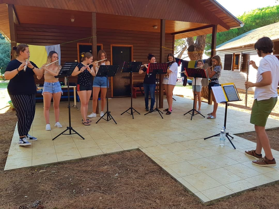 Ljetni kamp svima nama ostavio je velike osmijehe na licima. Prvi dan započeli smo sa sekcijskim probama u predivnom kampu Veli Jože, a navečer zabava. Naravno, glazbe, improvizacija i smijeha nije nedostajalo. Drugi dan je već uslijedila zajednička proba! I oni najmlađi odlično su se držali na probama koje nisu bile nimalo lake! Uz svakodnevne sekcijske i zajedničke probe svi sudionici kampa pokazali su veliki entuzijazam prema programu i sviranju, ali i prema sklapanju novih prijateljstva. I veliki i mali, svi su bili kao jedno, to je ono što ovaj orkestar čini posebnim. Svoj koncert održali smo u prekrasnom Kempinski Hotel Adriatic Istria Croatia.