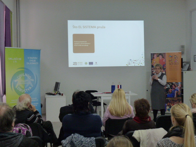 U prostorijama Saveza udruga Rojc u Puli, 3. i 5. ožujka održane su prve prezentacije projekta „El Sistema u Istri“ - Poticanje inovativnih oblika filantropije u lokalnim zajednicama za potporu održivosti organizacija civilnog društva. Na prezentacijama koje je održala Carmen Hiti, direktorica projekta, prisutni su upoznati s metologijom El Sisteme te s projektom „El Sistema u Istri“ koji provodi Udruga SO DO (Sustav orkestara djece i omladine) u partnerstvu sa Zakladom za poticanje partnerstva i razvoj civilnog društva. Na prezentacije su se odazvali zainteresirani ponajviše iz obrazovnog i kulturnog sektora te svojim dolaskom i interesom pružili podršku projektu.